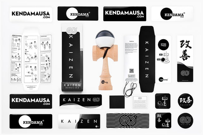 Find your zen with our classic black and white Kaizen Half Split Kendama. Kaizen Half Splits are designed for Pro level playability at an entry-level price. Our classic black and white half split design helps you easily track the ball as it rotates during tricks. We have added several important tracking elements including a top dot on the tama, an engraving on the rim of the big cup, a painted stripe around the bevel, and a painted base cup hole. The matching black string is extra-long to make juggling easier. Our KUSA Super Stick paint is grippy and will help you lock in precision balance tricks like lunar and lighthouse. The tama (ball), sits on a Jet shape Ken (handle) which was meticulously designed in the USA by our Pro Team.
