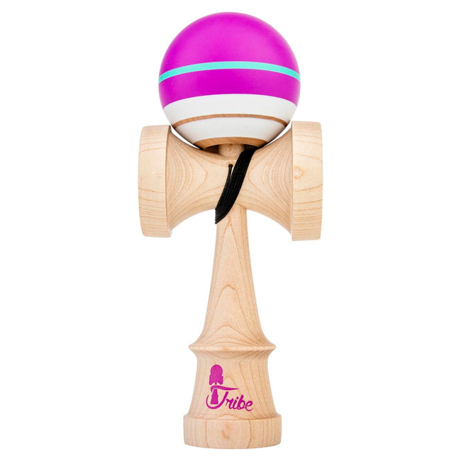 The Blossom features a purple multi-stripe cherry tama, coated with our with our latest silk paint. It includes a top dot and bevel outline that complements the colors and improves tracking. We've paired this tama with a maple Jet-shaped ken that is weight matched within 7g. This Kendama was designed by Tribe team member Lisa Komatsubara. It comes packaged in a customized Tribe bag and includes a replacement string, bearing, and stringing tool.
