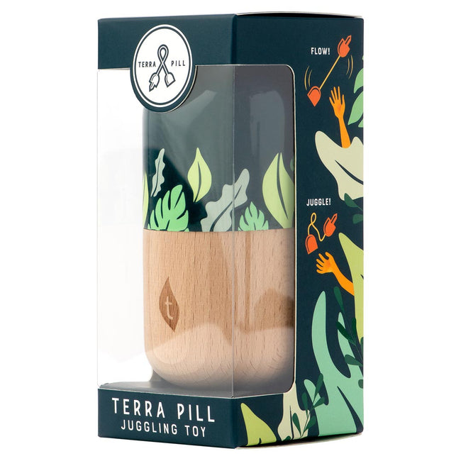 The dark green Floral Pill is a fun skill toy created by our friends from Terra Kendama. Since first inventing the toy, they have worked hard to hone the design for maximum playability. The Pill is simple in design, with endless possibilities for tricks. Players around the world continue to discover and invent new tricks with it. If you enjoy satisfying spikes, endless spacewalk lines, tricky balances, and creative tricks, then perhaps The Terra Pill is just what you've been craving.