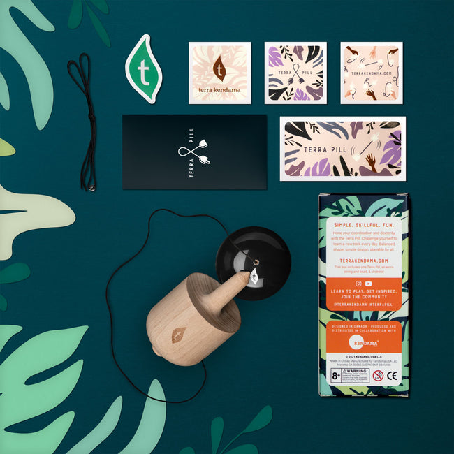 It's also great as a stepping stone into Kendama for newer players. For the seasoned Kendama pro, we challenge you to translate the skills you have mastered to The Terra Pill. What sort of tricks will you come up with?