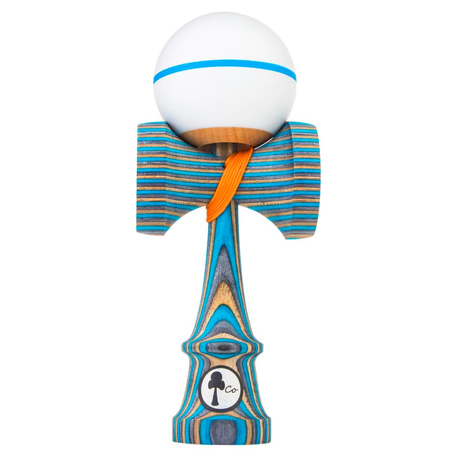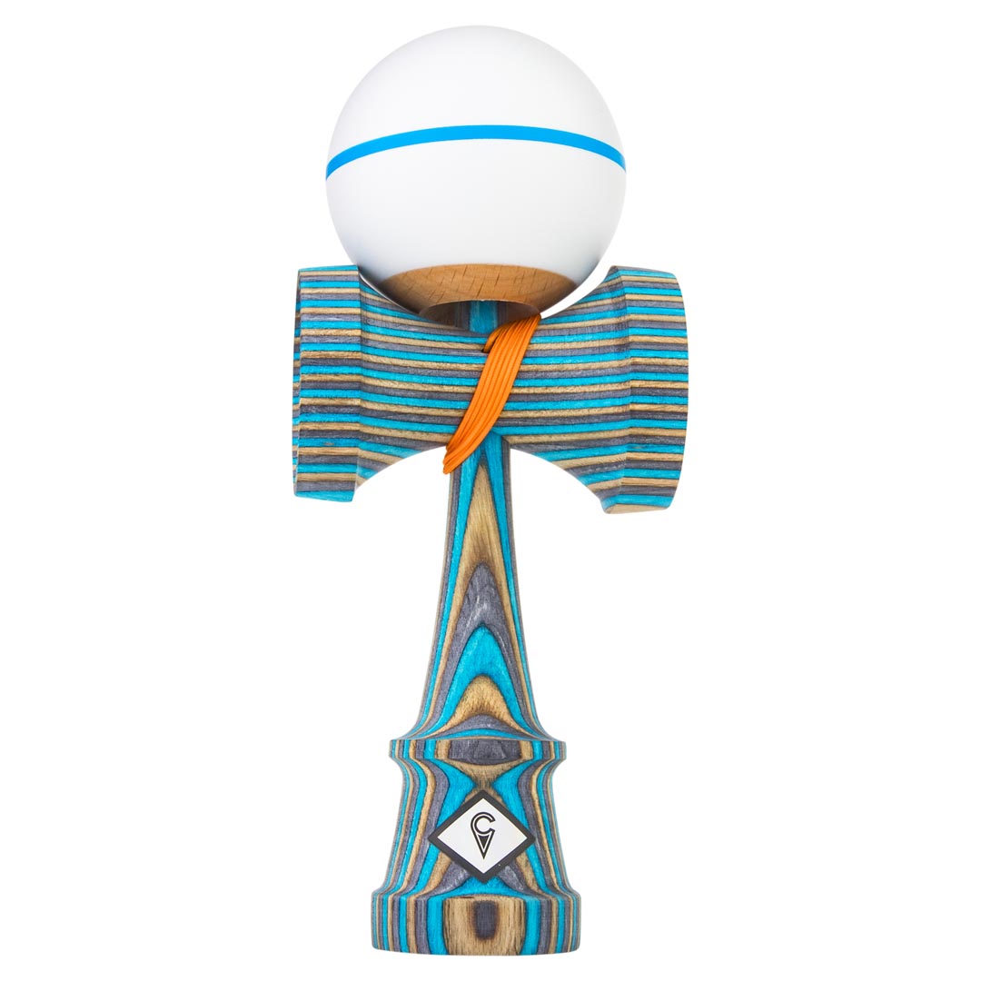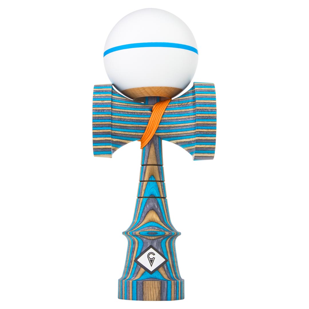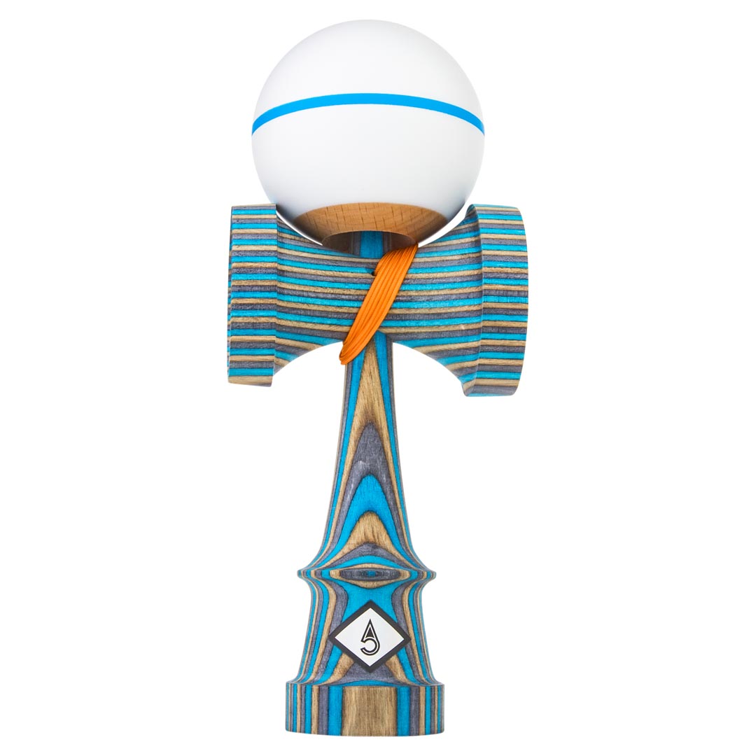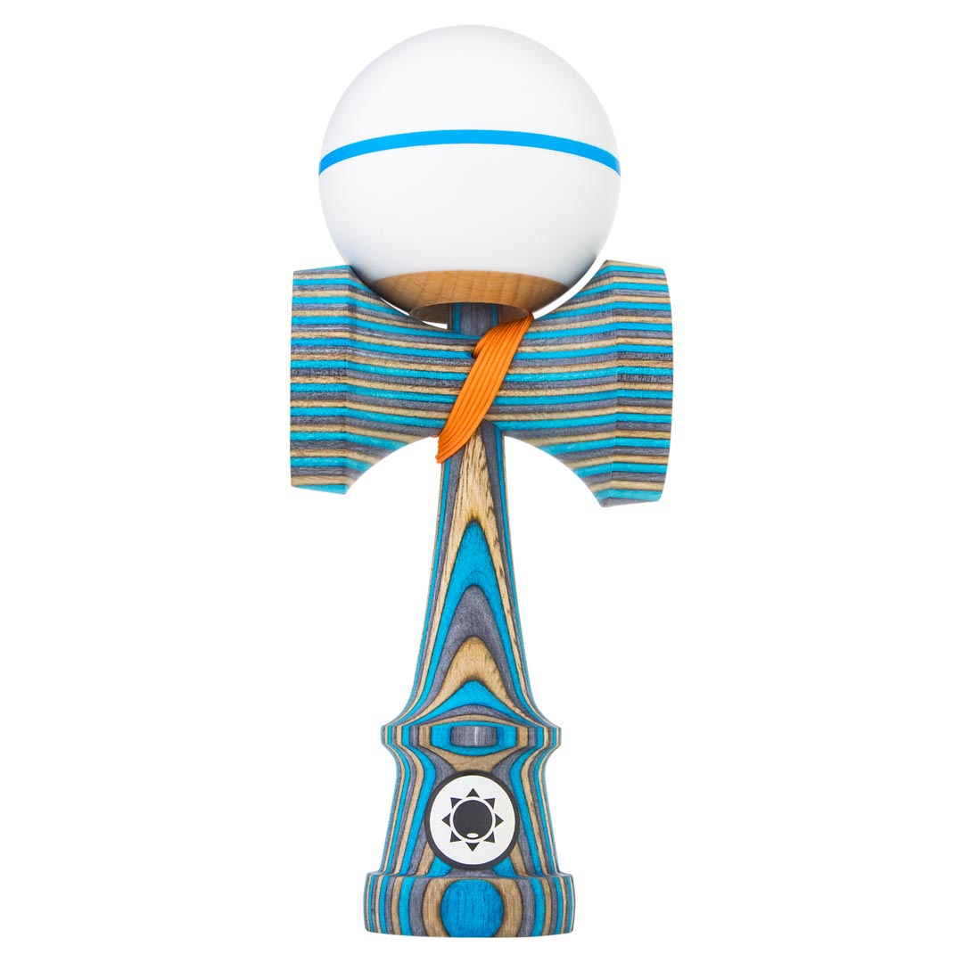 The Frost Spectra Kendama is hand-made from slabs of dyed blue, brown, and grey birch wood that was fused together to create a truly unique Ken. The ken is paired with a white Tama with a thin blue stripe and top dot to add style and tracking, and is strung with an orange string. This Craft Ken comes in a drawstring bag and is available in your choice of the Jet, Luna, Saga, 2UP, or the new KenCo Zen shape. *Note that that only the Jet Shape will include the 3 burn lines on the Ken.