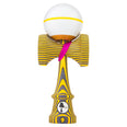 The Hive Mind Spectra Kendama is hand-made from slabs of yellow and grey birch wood that was fused together to create a truly unique Ken. The matching tama features a bright white base with a thin yellow stripe and natty stripe around the bevel. This Craft Kendama comes in a drawstring bag and is available in your choice of the Jet, Luna, Saga, 2UP, or the new KenCo Zen shape. *Note that that only the Jet Shape will include the 3 burn lines on the Ken.