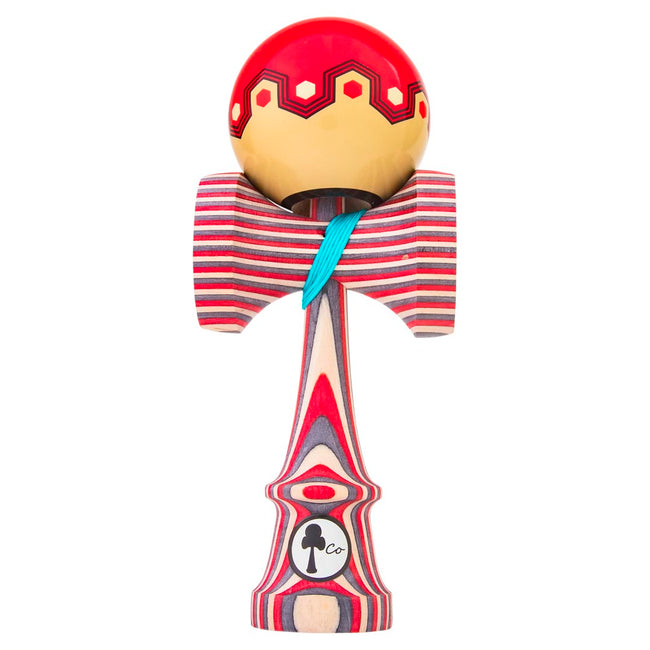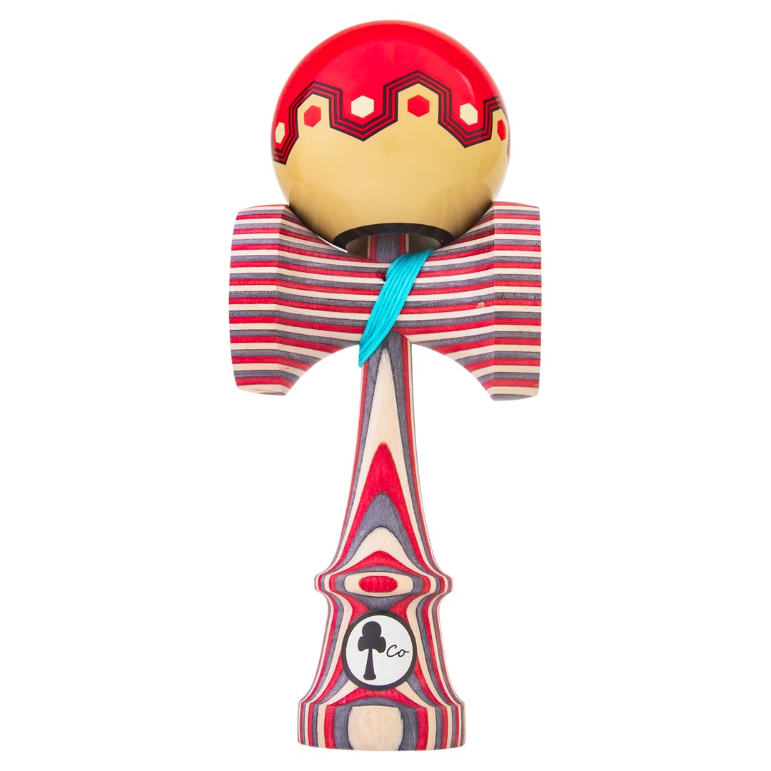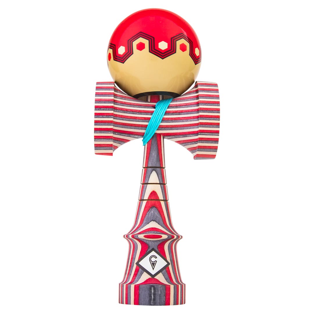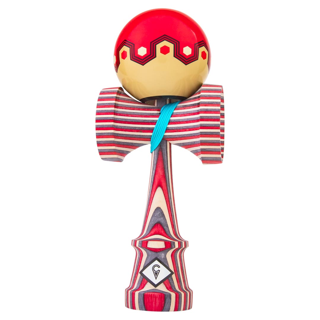 The Inferno Spectra Kendama is hand-made from slabs of red, grey, and off-white birch wood that was fused together to create a truly unique Ken. It's paired with a limited edition red and cream origami hex style tama coated in our superstick paint. This Craft Ken comes in a drawstring bag and is available in your choice of the Jet, Luna, Saga, 2UP, or the new KenCo Zen shape. *Note that that only the Jet Shape will include the 3 burn lines on the Ken.