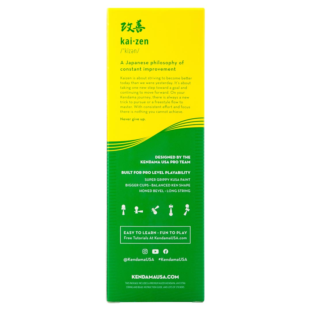 Kaizen is the Japanese philosophy of constant improvement. We’ve applied this concept to our production process; continuously improving every product that we put our name on. The result is an affordable and superior Kendama professionally crafted for players of all levels.