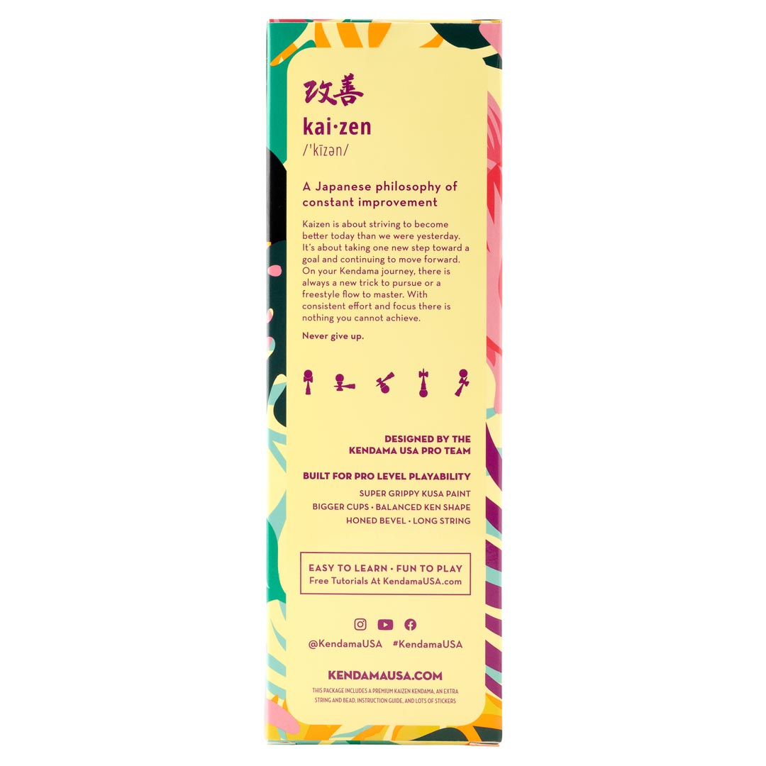 Kaizen is the Japanese philosophy of constant improvement. We’ve applied this concept to our production process; continuously improving every product that we put our name on. The result is an affordable and superior Kendama professionally crafted for players of all levels.