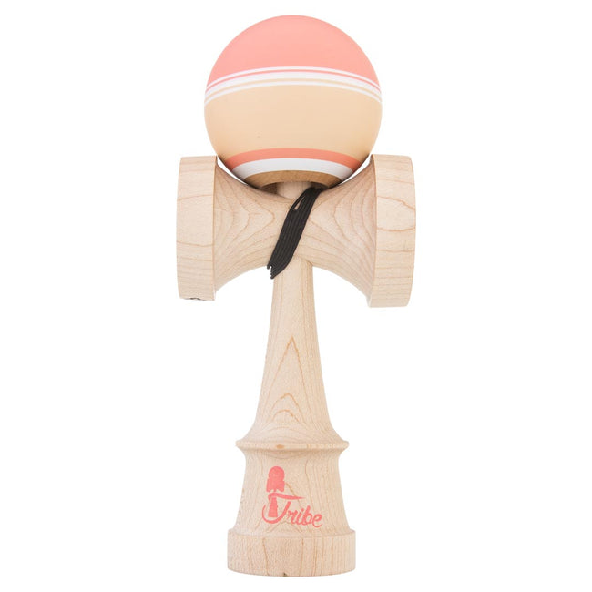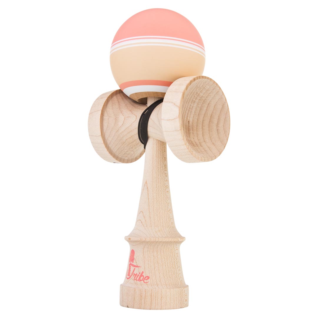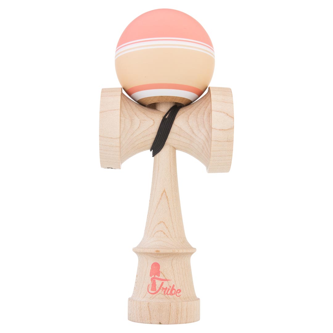 The Malibu features a peachy coral colored tama with white tracking stripes and a natty bevel stripe. This gorgeous pastel tama sits on a maple Saga Shape Ken, and is coated in our Silk AS2 paint. This Kendama was designed by Tribe team member Connor Simpson. It comes packaged in a customized Tribe bag and includes a replacement string, bearing, and stringing tool.
