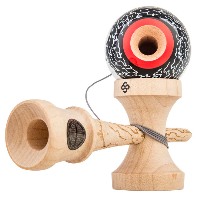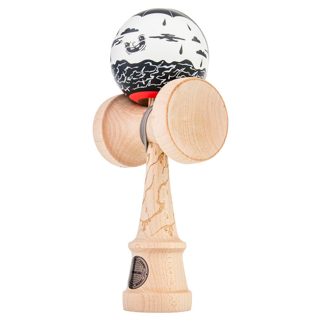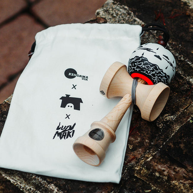 We joined forces with Ghost Town and Luzumaki to create a limited edition Kendama like no other. The Raindrops collab is a perfect storm of creativity and design. This masterpiece showcases a tama full of collaborative art with an umbrella design on top, and a red bevel ring at the bottom. We paired this beech Tama with a uniquely engraved maple Saga Shape ken and a customized seal. This epic Kendama is available in your choice of either silk or super stick paint.