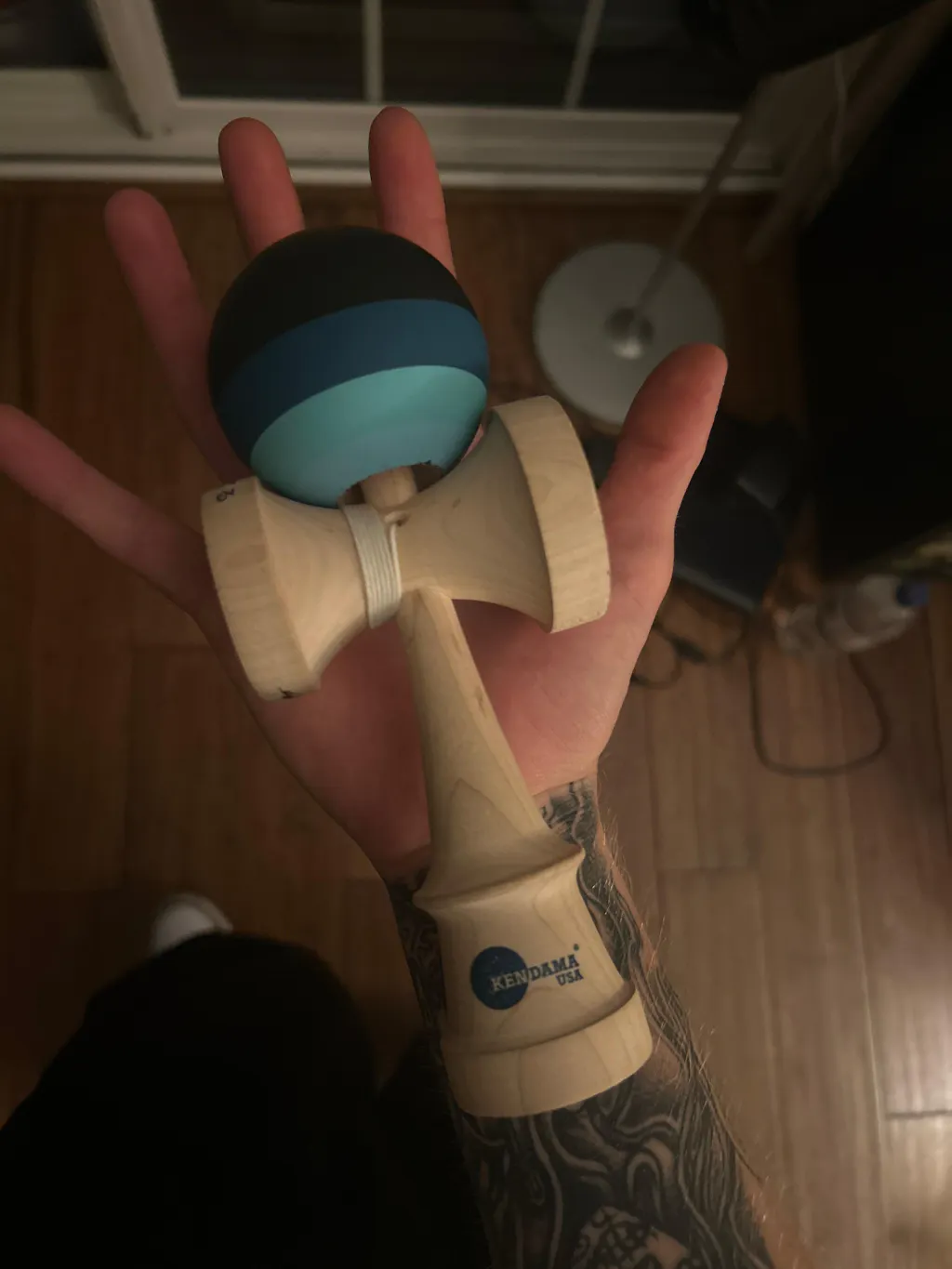 We’re excited to collaborate with the Make Waves Agency for this special edition Kendama. Make Waves was founded by former KUSA Pro TJ Kolesnik, and this Kendama is inspired by his OG pro model colors and design. The bottom half of the maple tama features stripes of blue shades representing the sea, and the top half of the tama is a dark blue fading into a deep burnt orange representing the sunset. This tama is coated in your choice of our updated silk or superstick paint, and is paired with a maple Jet shaped Ken.