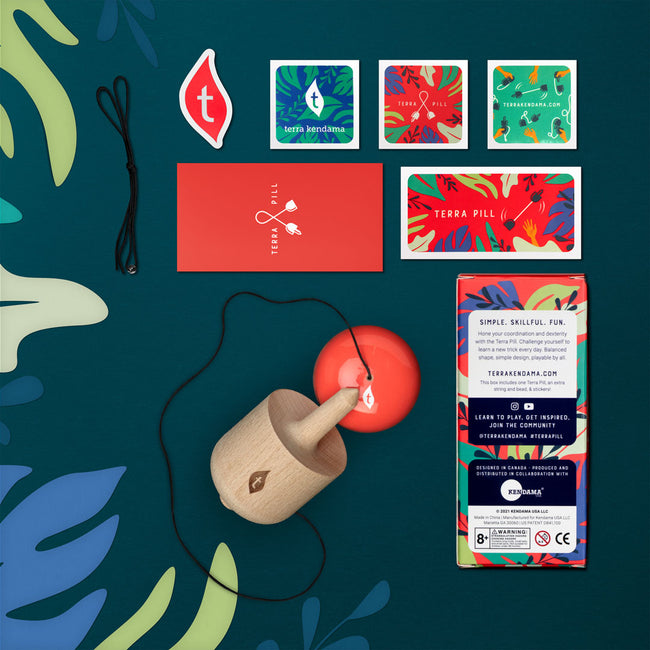 Often referred to as a pill kendama or capsule kendama, terra pills are great stepping stones into Kendama for newer players. For the seasoned Kendama pro, we challenge you to translate the skills you have mastered to The Terra Pill. What sort of tricks will you come up with?