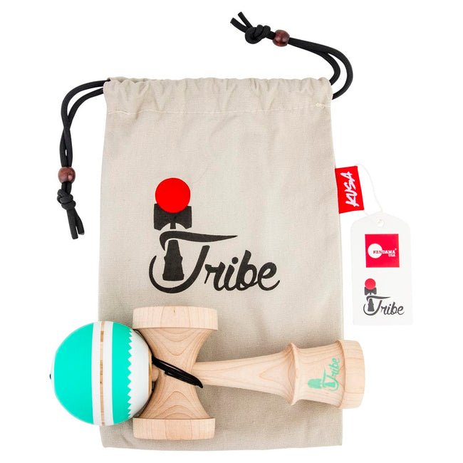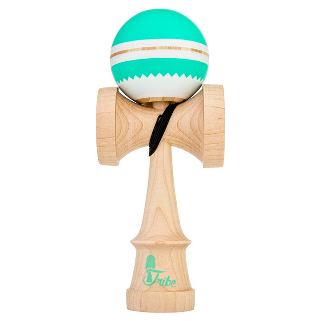 The Cove features a seafoam green & white tama, coated with our with our latest silk paint. It includes a top dot and a natural bevel outline that complements the colors and improves tracking. We've paired this bamboo tama with a maple Jet-shaped ken that is weight matched within 7g. This Kendama was designed by Tribe team member Jacob Watts. It comes packaged in a customized Tribe bag and includes a replacement string, bearing, and stringing tool.